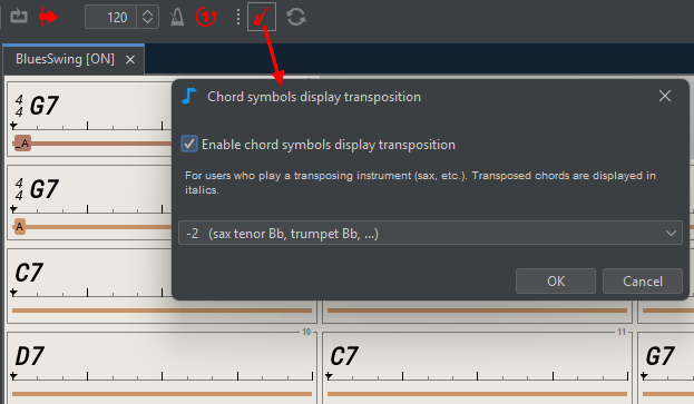 [enhancement] Improve chords display for transposing instrument players (sax, ...) #534